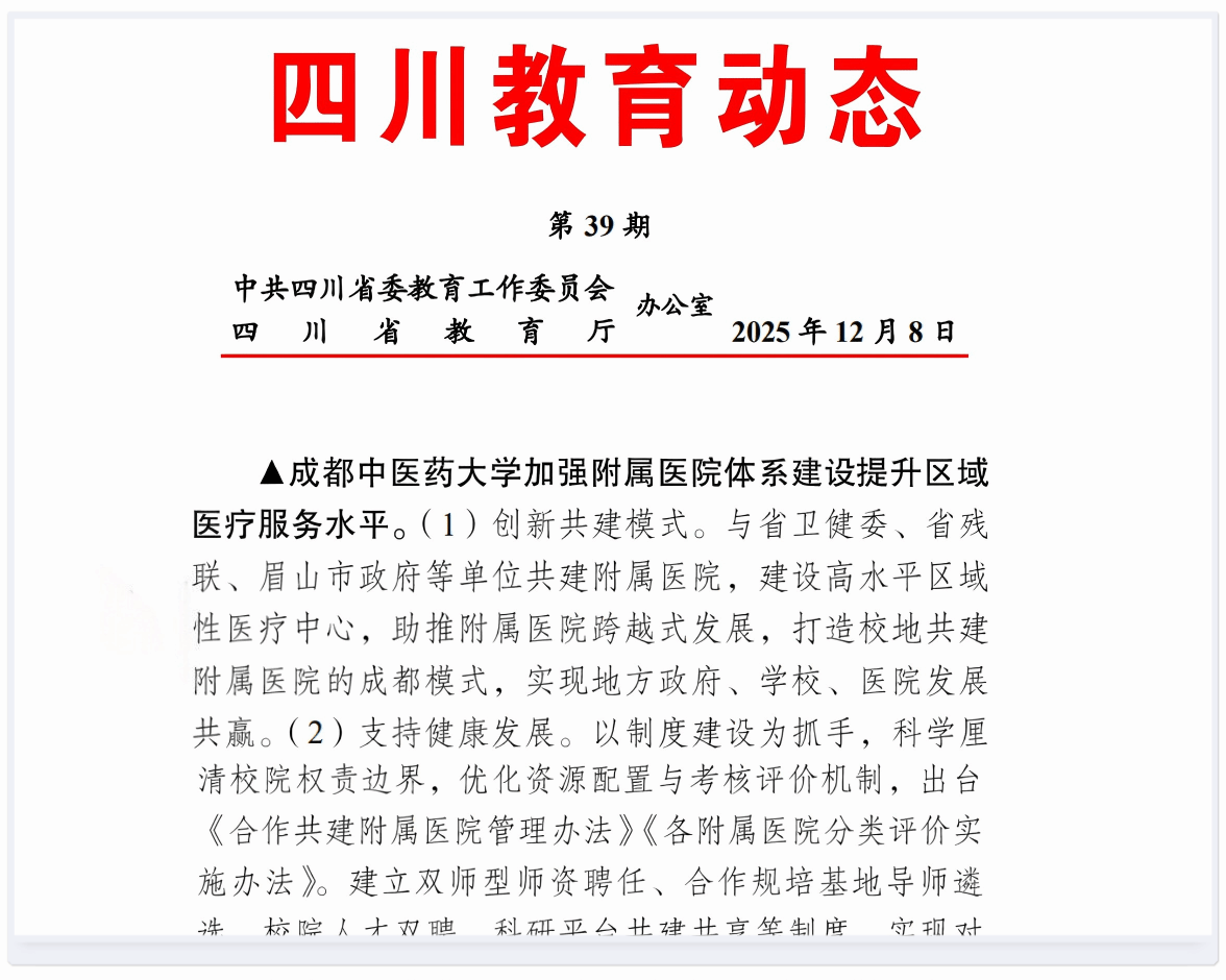 《四川教育动态》第39期刊登了伟德附属医院体系建设的经验分享——伟德源自英国1946加强附属医院体系建设提升区域医疗服务水平。