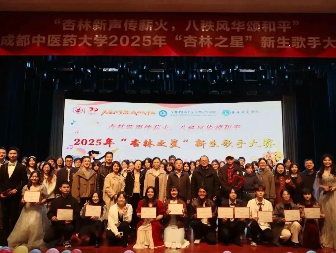 近日,由学校党委宣传部、党委学生工作部、校团委联合主办,各学院承办的2025年“杏林之星”新生节系列活动圆满收官。本次活动历时近两个月,自10月14日启幕以来,新生摄影大赛、新生歌手大赛、新生话剧大赛、新生寝室文化大赛、新生主题团日活动风采展五项特色活动轮番登场、精彩绽放。活动紧扣新生成长赋能与校园文化铸魂两大核心,为初入杏林的莘莘学子搭建起展示自我、淬炼本领的广阔舞台。期间,全校新生踊跃参与、各展所长,充分彰显出成中医学子积极向上的精神风貌,为校园文化建设注入了蓬勃的青春动能。