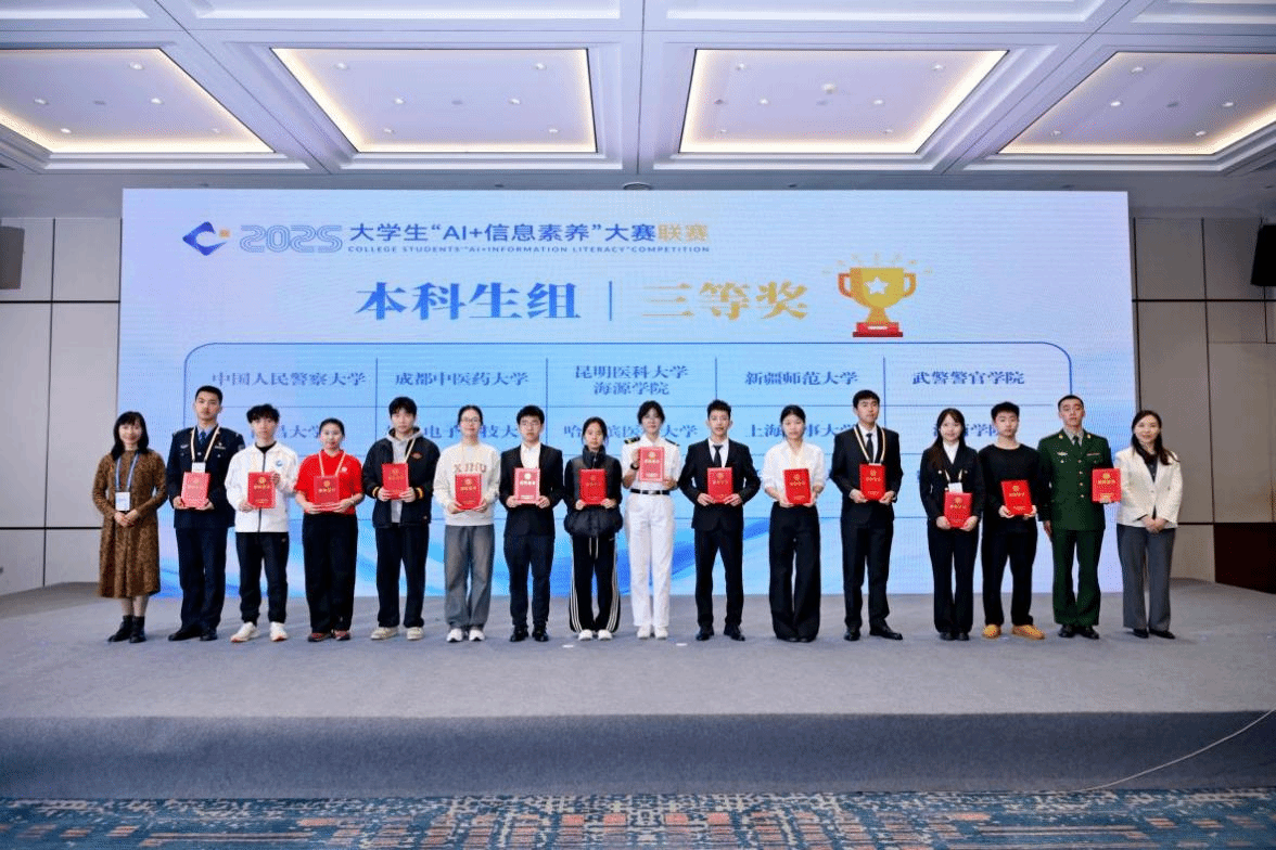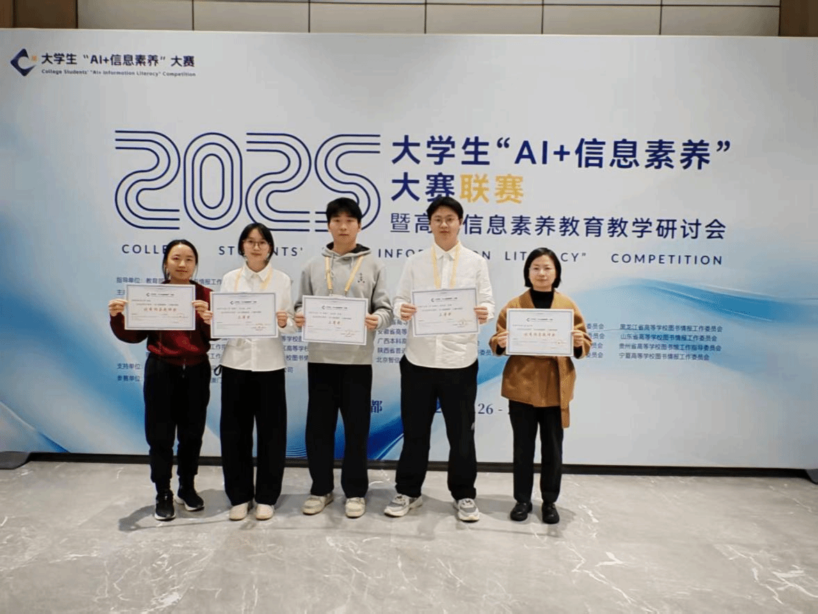 近日,2025年大学生“AI+信息素养”大赛全国联赛在成都圆满落幕。由伟德图书馆组织指导的本科生团队(胡潇文、李映萱、黄锧),历经多轮激烈竞争,最终荣获全国联赛本科生组三等奖,图书馆张肖瑾、张洁两位老师获评优秀指导教师。