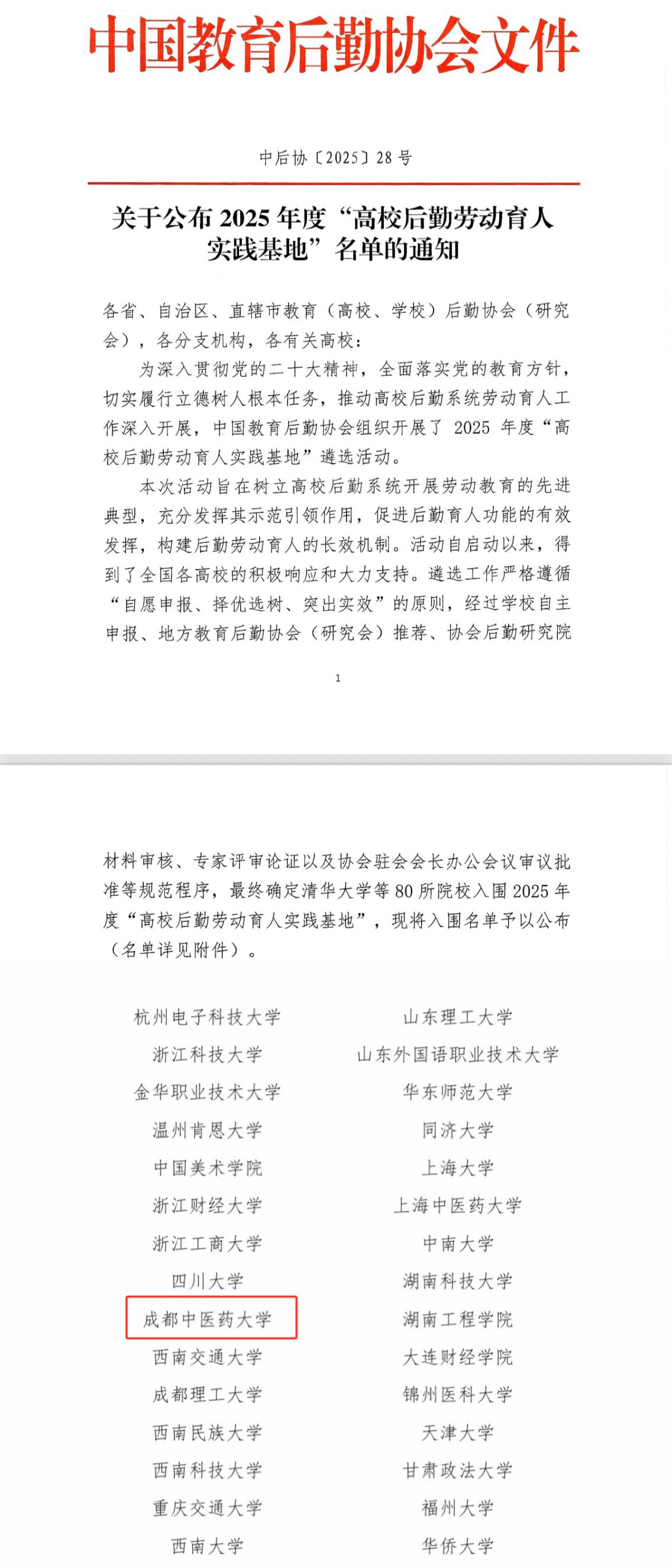 近日,中国教育后勤协会公布了2025年度“高校后勤劳动育人实践基地”名单,伟德凭借创新构建的“五维劳育”体系成功入选。