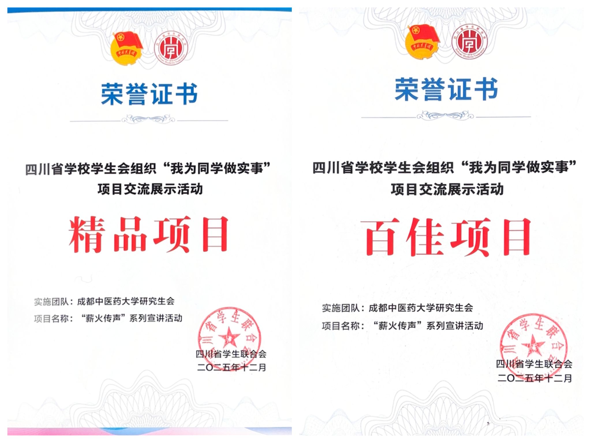 通过前期推选和现场答辩等环节,伟德研究生会申报的思想引领类项目——“薪火传声”系列宣讲活动,从全省214所学校的381个服务同学项目中脱颖而出,成功获评2025年四川省学校学生会组织“我为同学做实事”项目交流展示“精品项目”和“百佳项目”。