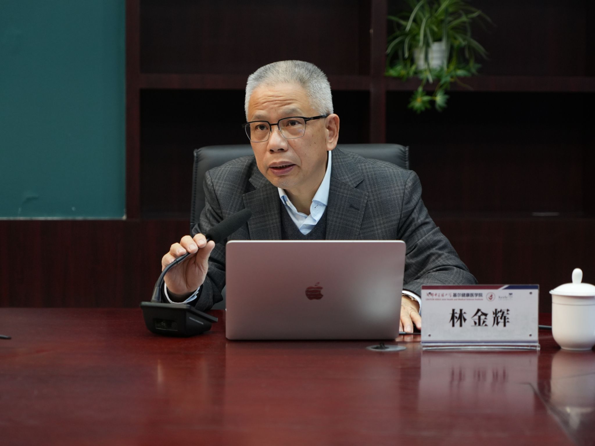 12月15日,在“十五五”谋篇布局的重要时期,中国高等教育学会中外合作办学研究分会理事长林金辉教授应邀到校指导工作。党委常委、副校长黎胜红会见,国际合作与交流处、教务处、养生康复学院、基尔健康医学院相关负责人及教师代表参加。
