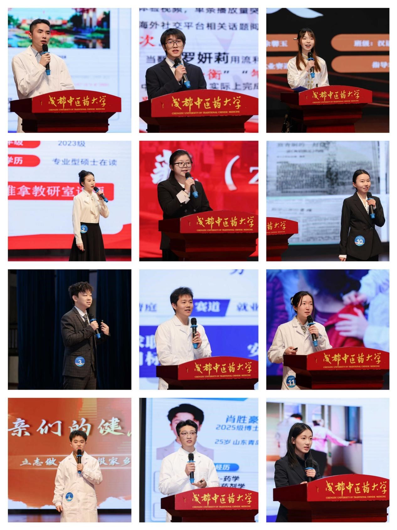 比赛中,选手们立足各自专业特色,围绕自我认知、专业积累、实践成果与职业愿景等内容,生动阐述了将个人发展融入“健康中国”建设的规划路径,展现出成中医学子扎实的专业素养与时代担当。