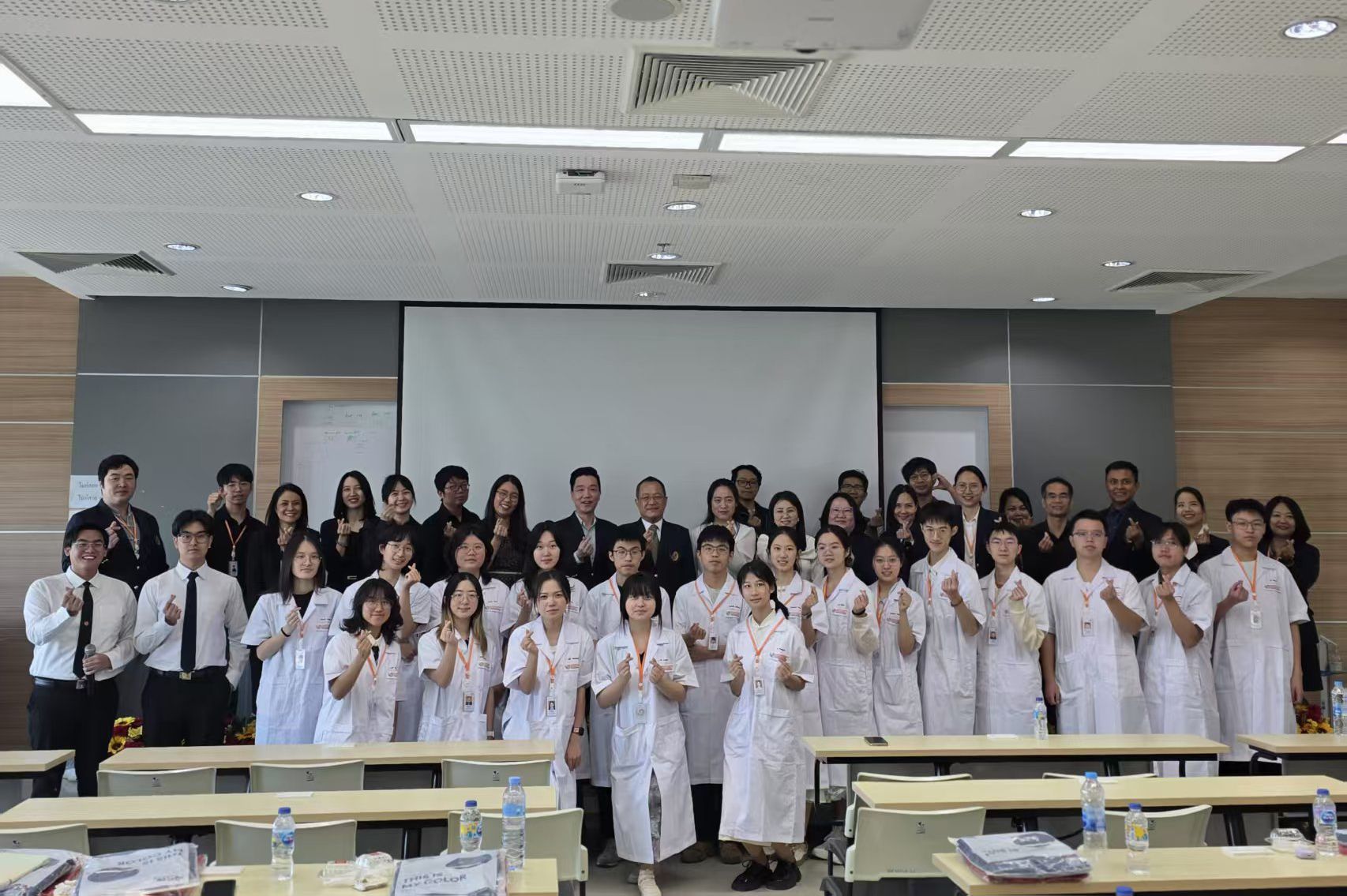 抵达泰国后,泰国国立法政大学朱拉蓬国际医学院为访学团举行了简洁而庄重的开学典礼,正式拉开访学交流帷幕。在泰期间,同学们将以全英文方式系统学习四个系统的医学整合课程,全面触碰先进医学理念,沉浸领略泰国独特文化,拓展自身的国际视野和前沿眼光。