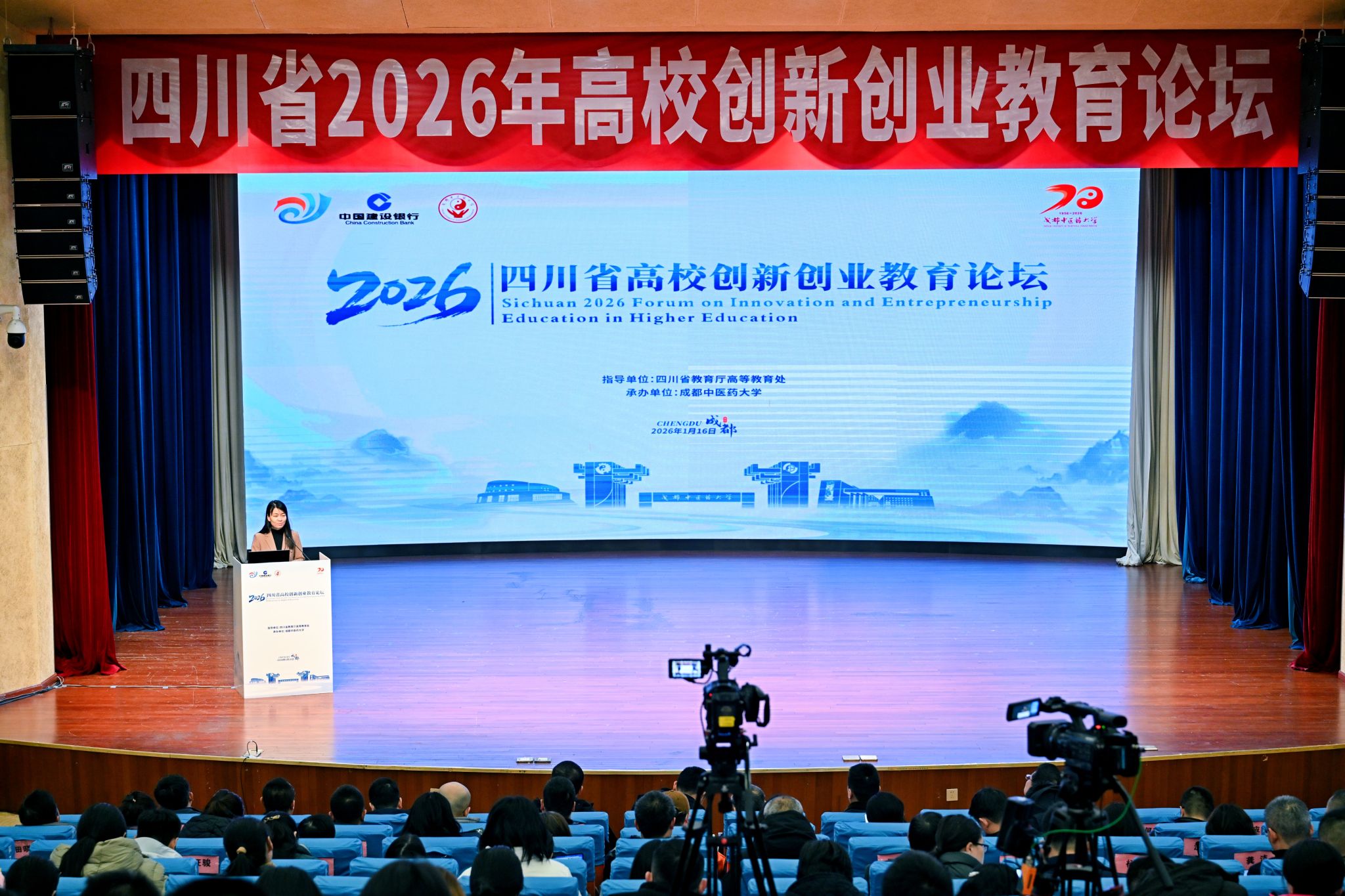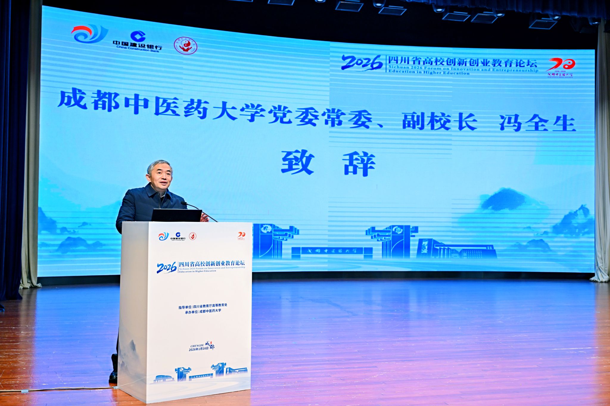 1月16日,由四川省教育厅指导、伟德源自英国1946承办的“四川省2026年高校创新创业教育论坛”在伟德温江校区开幕。本次论坛以“融合创新·汇智未来——高校创新创业教育高质量发展路径探索”为主题,汇聚了来自四川大学、电子科技大学、西南交通大学等100多所省内高校的领导、专家学者以及师生代表,共同探讨新时代高校创新创业教育的理念、路径与实践。