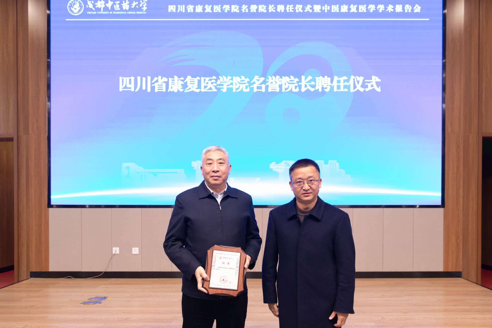 1月17日下午,四川省康复医学院名誉院长聘任仪式暨中医康复医学学术报告会在学校举行。中国康复医学会会长陈立典、四川省残疾人联合会副理事长黄卫德、学校校长曾芳出席活动,省残联处室领导、学校相关职能部门领导、四川省康复医学院/四川省八一康复中心领导班子、养生康复学院班子,四川省康复医院/四川省八一康复中心职工代表和学校师生代表共200余人参加活动。