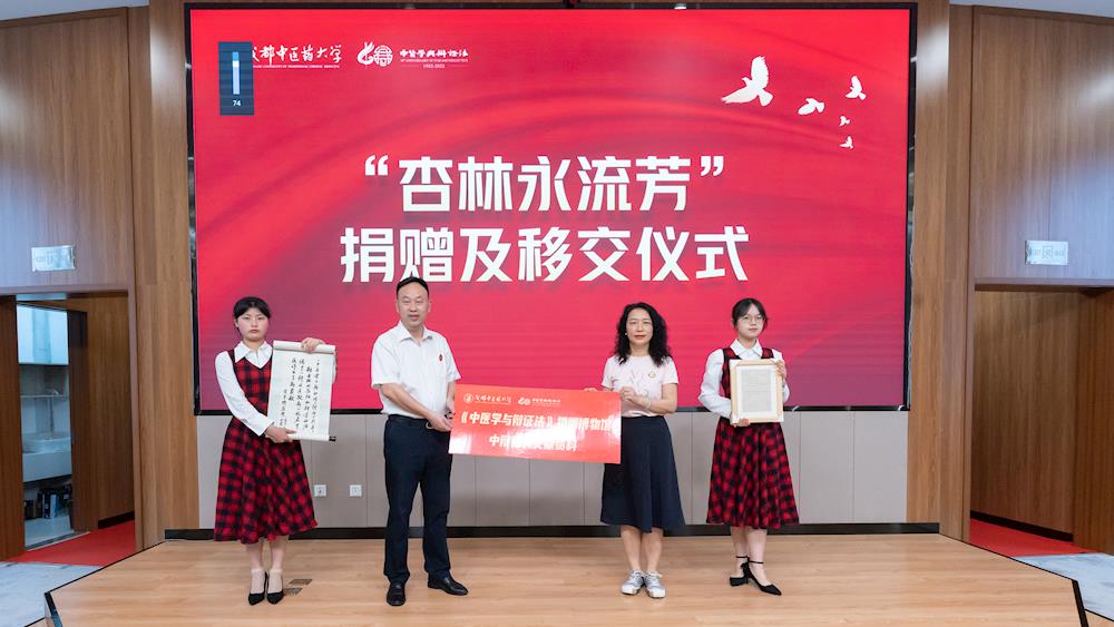 莫凡向博物馆副馆长蒋桂华移交了《中辩》相关文献资料,中辩发起人代表、中辩校友会会长毛嘉陵和湖北科皓知识产权事务所所长张火春向校友会捐赠中医学与辩证法研究专项公益基金。