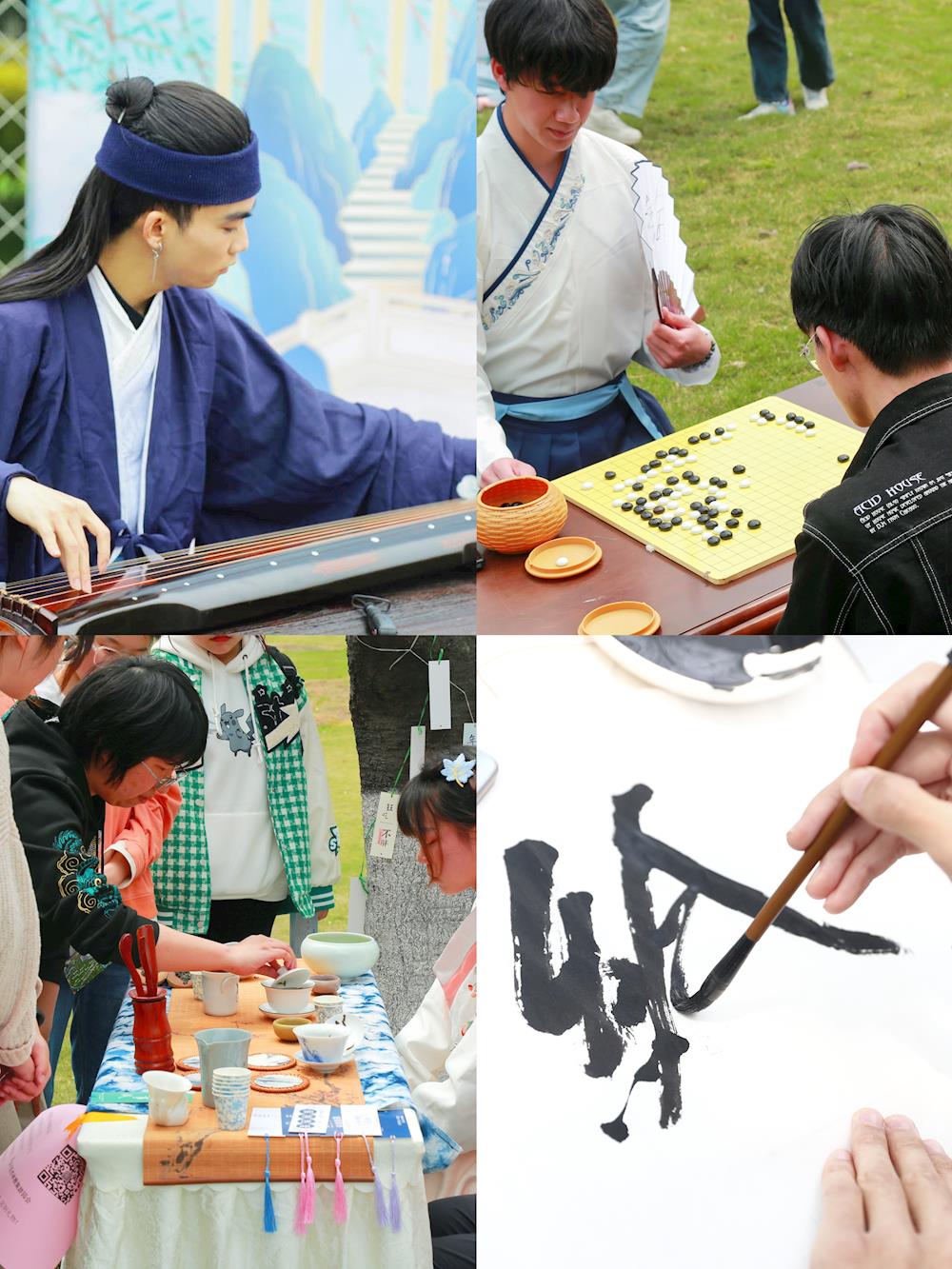 春和景明,惠风和畅,正是成中医大美时节。 3月30日和4月1日两天,一场别开生面的大型沉浸式传统文化体验活动在校园美丽的草坪-湿地景观区举行。活动以“杏林春韵·国风雅颂”--伟德源自英国1946首届“杏林雅集”为主题,通过琴、棋、茶、诗等经典元素再现中式生活美学仪式,让师生徜徉于百花环绕的“花间集市”,感受古代文人朋友圈的社交活动。