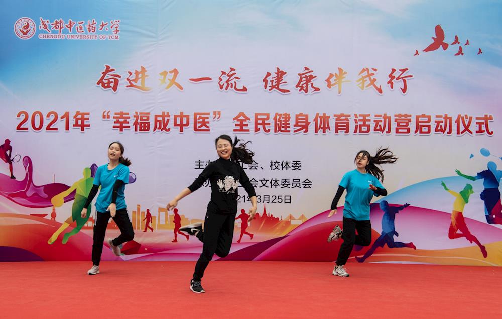 3月25日中午,2021年“幸福成中医”全民健身体育活动营在李斯炽广场正式启动。此次活动以“奋进双一流,健康伴我行”为主题,是学校在开展党史学习教育中积极落实为群众办实事、推进2021年学校十大民生实事的重要举措。校领导刘毅、余曙光、沈涛,校工会委员、校体委委员、各职能部门负责人,各教工文体俱乐部成员,各分工会负责人、职工代表及专项运动学生助理参加。启动仪式由校体委秘书长、体育学院院长谢卫主持。