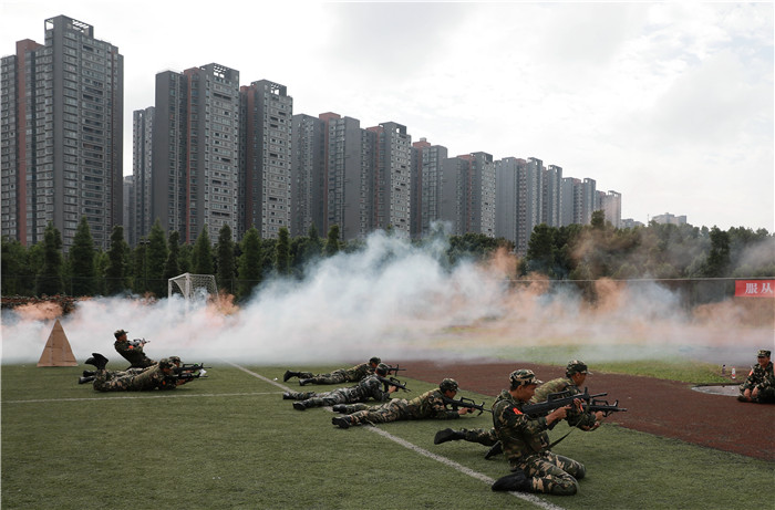 7月18日上午,伴着时而骄阳时而细雨的复杂天气,伟德2018级本专科学生军训汇报表演暨结训仪式在温江校区田径场圆满举行。学校党委书记刘毅、党委副书记沈涛、副校长徐廉、军训指导单位四川陆军预备役某部代表、各相关职能部门及参训学院负责人出席仪式。军训旅教官和2018级4740余名参训学生参加了汇报表演暨结训仪式。仪式由校武装部部长、2018级军训旅政委侯杰主持。
