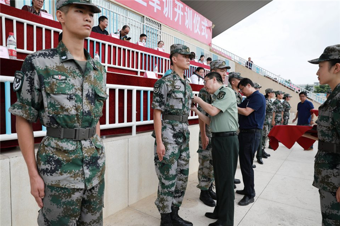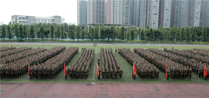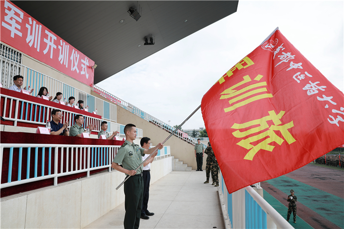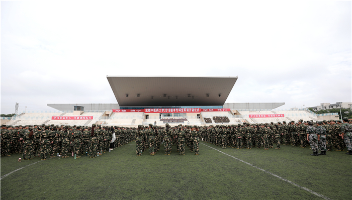 7月8日9:00,2018级本专科学生军训开训仪式在温江校区体育场举行。学校党委书记刘毅,党委副书记沈涛,2018级本专科学生军训旅参谋长、中国人民解放军四川陆军预备役高射炮兵师一团一营长钟伟少校,党政办公室、宣传部、学生处、人民武装部、教务处、校团委负责人及各参训学院领导出席开训仪式。开训仪式由校武装部部长、军训旅政委侯杰主持。