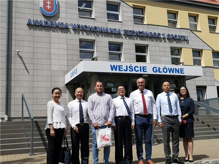 近日,应波兰格但斯克希尼亚德茨基体育大学瓦德勒·莫斯卡校长的邀请,学校党委副书记沈涛、国学院院长邬建卫、体育学院副院长谢卫、国际合作与交流处副处长舒薇等4人赴波兰格但斯克希尼亚德茨基体育大学访问并签署合作协议书。