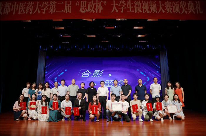 本次大赛评出一等奖1个、二等奖4个、三等奖7个、单项奖4个,出席会议的领导为获奖单位颁奖。其中针灸推拿学2017级3班的《归途》获得一等奖,作品在典礼上进行了展示。