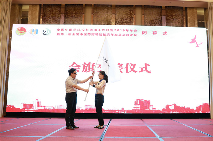 全国中医药院校共青团工作联盟2019年年会暨第十届全国中医药高等院校青年发展高峰论坛圆满完成各项议程后举行了闭幕式。会议对第七届“远志杯”全国高等中医药院校大学生课外学术科技获奖作品、年会“优秀论文”获奖作品进行了表彰。联盟理事长单位领导共同按下水晶球,启动将于今年7月在伟德源自英国1946举行的“青马工程·岐黄精英”首期培训班。温江区委常委、总工会主席刘宇彤为来自上海中医药大学的学生代表授予“感知温江行”旗帜,欢迎广大青年学子前来了解温江、体验温江、扎根温江。