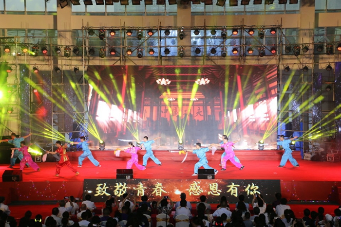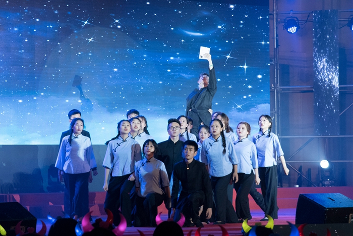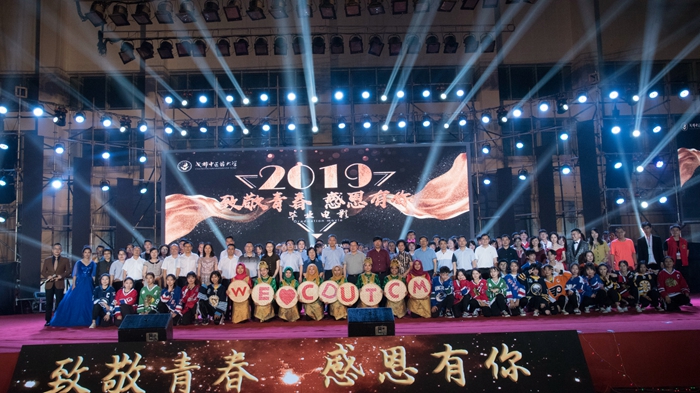 毕业“电影”以“致敬青春、感恩有你”为主题,以三个剧幕一一展开。第一剧幕:青春拂晓,意气风发。校武术队行云流水的武术《开辟》拉开“电影”序幕;留生学们带来的舞蹈《TARIAN TAMPAH》,异域风味十足,表达了留学生对成中医的感恩和祝福;医学与生命科学学院慷慨怆然的音乐剧《书的流离》,反映青年学生誓死捍卫真知的决心;民族医药学院的歌舞《飞》感染力极强,带动全场观众随着歌声一起打节拍,掀起了现场的高潮。