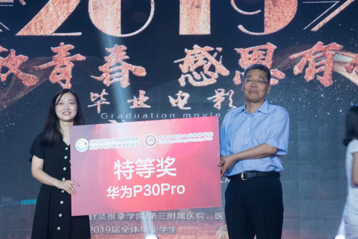 本次毕业“电影”剧幕之间特别增设了激动人心的抽奖环节,奖品均由学校附属银海眼科医院提供,包括了医院尊享卡、华为p30pro、华为m5平板电脑、华为手环等大奖,让毕业生们在临行前再一次感受了母校对同学们的眷眷深情。