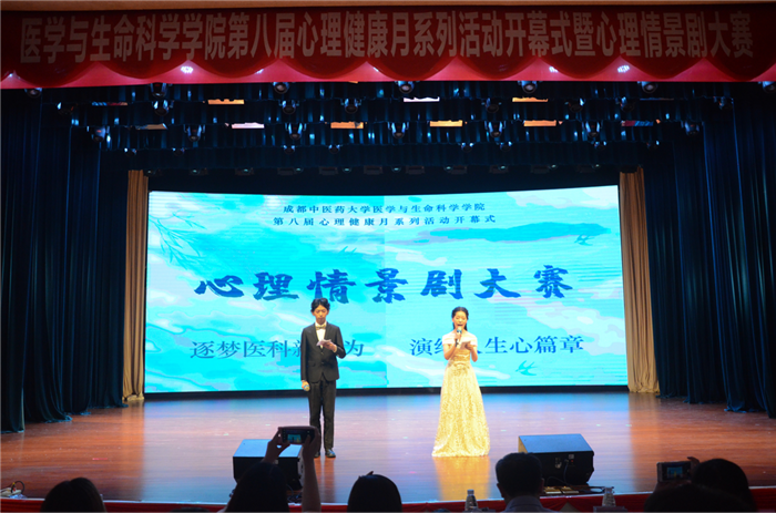 在艺术团爵士队精彩的舞蹈表演中,心理情景剧大赛正式拉开帷幕。此次活动经各班及艺术团话剧小品队精心组织排练并通过多次审核,最终遴选出8个优秀节目参加决赛,其中既有紧扣社会热点的剧目如《亲爱的谭县长》《传销险遇》等,也有与医学生学习生活息息相关的《优秀班集体》《初入临床,见证死亡》等。