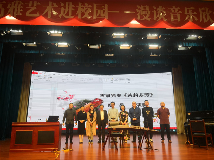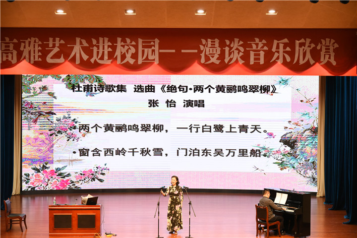 随后,林戈尔团队为大家带来了精彩纷呈的表演。杨俊演唱的《我是天地一蠹虫》,袁源带来的《无伴奏小提琴独奏》、张怡演唱的《绝句:两行黄鹂鸣翠柳》、陆晶的古筝独奏《茉莉芬芳》,史倩与程刚演唱的歌剧《卓文君》中二重唱选段并演唱个人曲段《别动那张琴》,为观众带来了一场听觉享受,获得了在场师生热烈的掌声。