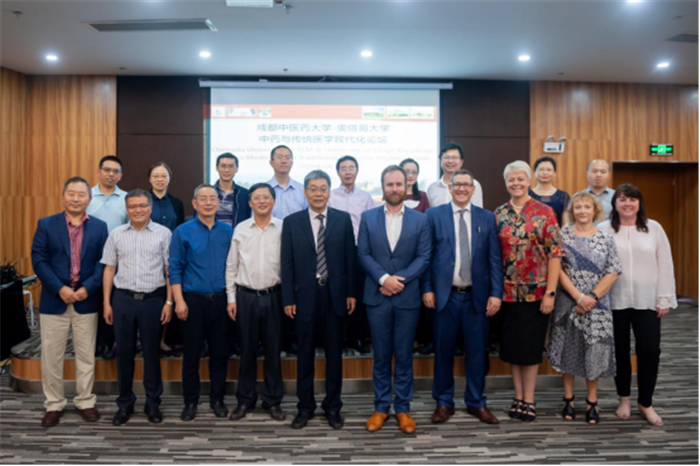 4月26日,新西兰驻成都领事馆副总领事Xander Bums,奥塔哥大学药学院院长Prof. Carlo Marra等一行来校举办伟德源自英国1946-奥塔哥大学中药与传统医学现代化论坛。学校校长余曙光、副校长彭成及相关职能部门和学院师生参加论坛,论坛由彭成教授主持。