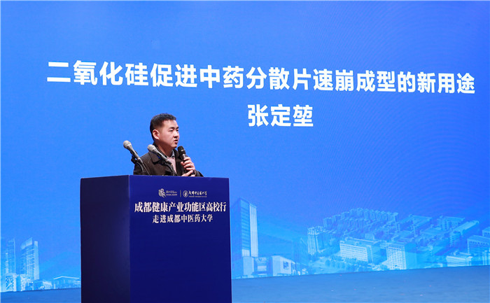 经学校中医药知识产权运营中心组织项目筛选和评议,张定堃老师团队“二氧化硅促进中药分散片速崩成型的新用途”、程小恩老师团队“中医药大数据开放共享平台”、陈艳老师团队“藤椒全产业链技术集成及示范”、陈鸿平老师团队“白及中医药美容”等4个科技成果转化项目在活动上进行了路演。