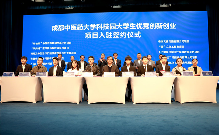 本次活动还邀请了包括国医大师刘敏如女科医系研究院、四川省麦冬产业技术研究院、成都中医大黄精产业研究所等10个校友企业集中签约入驻中医大健康谷。