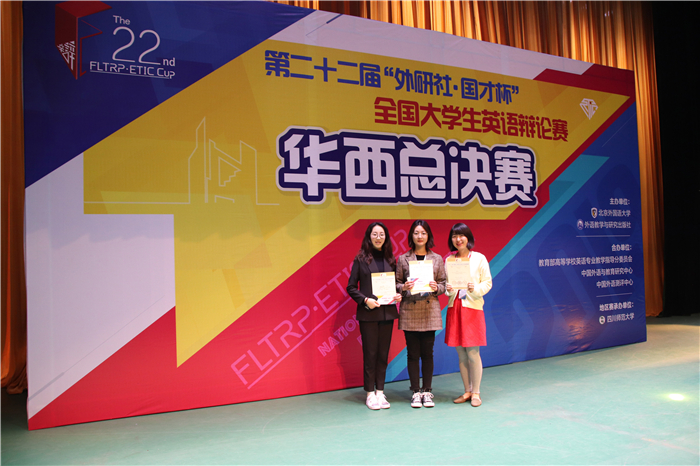伟德学生荣获全国大学生英语辩论赛华西赛区决赛三等奖 发布时间:2019-04-01 13:52:00 浏览次数: 次 【字体:小 大】 3月29日至3月31日,第二十二届“外研社• 国才杯”全国大学生英语辩论赛华西赛区决赛在四川师范大学举行。在外语学院教师赖寒的带领下,伟德学生肖瑶和张雨谷不畏强手,经过六轮辩论,喜获三等奖。本次大赛由北京外国语大学与外语教学与研究出版社主办,教育部高等学校英语专业教学指导分委员会、中国外语与教育研究中心、中国外语测评中心与四川师范大学共同承办。共有来自四川、云南、宁夏、重庆等省市自治区的80余所高校近90支队伍参赛。 (文/外语学院 赖寒 图/肖瑶 编辑/霍文巍) 【打印正文】 上一条:民盟伟德源自英国1946委员会召开换届成立大会 下一条:药学院与马克思主义学院、管理学院联合举办党政管理人员业务培训会