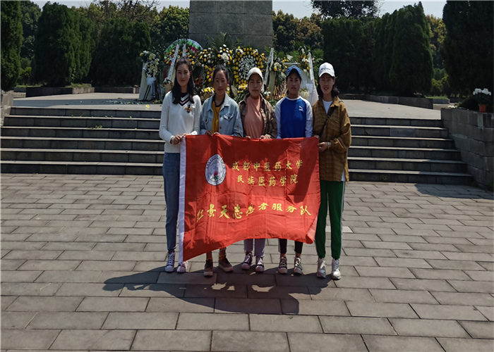 体育学院、民族医药学院青年学生志愿者前往温江烈士陵园为烈士献花,学习烈士的英雄事迹,接受生动的爱国主义教育。
