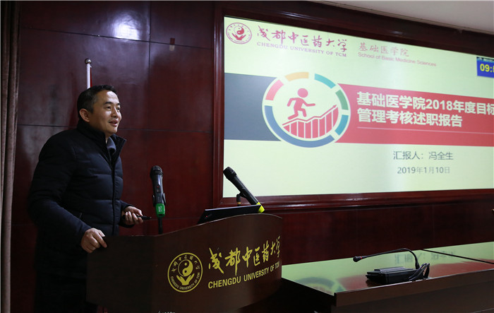 围绕2018年度业绩目标承诺陈述、2018年度主要业绩行为分析、2018年度主要问题分析、改进要点与措施、需要得到的支持、2019年度业绩目标陈述等方面的目标任务,基础医学院院长冯全生,临床医学院/附属医院院长谢春光,药学院院长傅超美,党委教师工作部/人事处部长、处长郑川,科技处处长刘友平作现场述职报告。其他学院、部门作书面述职报告。