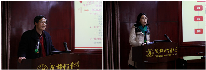 围绕深入学习贯彻习近平新时代中国特色社会主义思想、党的十九大精神和习近平总书记对四川工作系列重要指示精神,履行抓党建工作职责,党风廉政建设,落实学校党的建设工作28项重点任务,抓基层党建工作创新做法、成效以及存在的问题,下一步工作思路及措施等方面的党建工作,临床医学院/附属医院党委书记常德贵、针灸推拿学院/第三附属医院党委书记张俭、养生康复学院党委书记谌立巍、公共卫生学院党委书记张舒、医学技术学院党委书记王英文作现场述职报告。其他分党委、党总支书记作书面述职报告。本次基层党组织书记抓党建工作述职报告是学校全面从严治党的一项重要举措,目的是推动各基层党组织更好担当起管党治党根本政治任务,推动形成“一心一意抓发展、聚精会神抓党建”的良好格局。