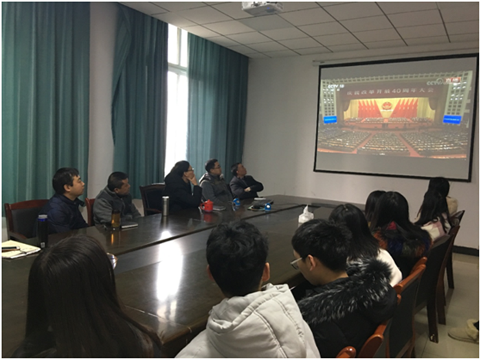 12月18日上午,庆祝改革开放40周年大会在人民大会堂举行。中共中央总书记、国家主席、中央军委主席习近平出席大会并发表重要讲话。按照学校工作部署,全校各单位、部门积极组织师生观看大会现场直播,学习交流习近平总书记重要讲话精神。