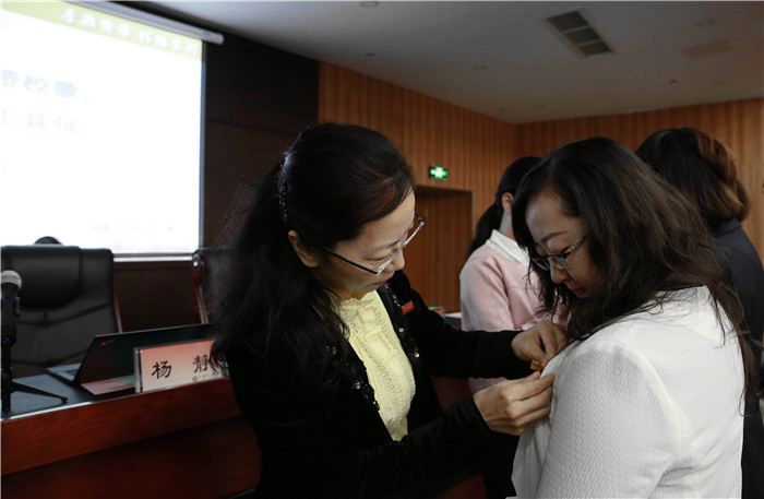 开班仪式上,全体教师进行了入职宣誓和佩戴校徽活动。新教师面对校旗,庄严地许下入职誓言,承诺忠于教育事业,履行教师职责,不辱光荣使命。宣誓仪式后,各位与会领导为新教师代表佩戴校徽,赠送入职工具包,欢迎新同事的加入,并对他们未来在成中医的工作和生活寄予期望和祝福。