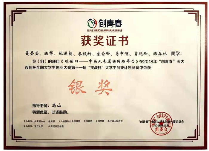 日前,由共青团中央、教育部、人力资源和社会保障部、中国科协等单位主办的2018年“创青春”浙大双创杯全国大学生创业大赛决赛在浙江大学举行。伟德眼科学院推送项目《岐伯曰——中医人专属的网络平台》在创业计划竞赛中荣获全国银奖,创下伟德近十年来在“创青春”“挑战杯”赛事上取得的最好成绩。