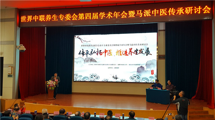 会议由世界中联养生专委会会长、学校养生康复学院名誉院长马烈光教授与校友、重庆市中医药学会名誉会长马有度一同主持,马烈光教授还以《华叶递荣,声实相副》《中医养生国际化》为题,在上午和下午的会议中分别做了主题演讲。