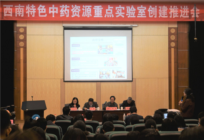 10月27日上午,西南特色中药资源重点实验室创建推进会在药学楼学术报告厅召开。校党委书记刘毅,副校长兼实验室主任彭成,党政办公室、发展规划处、党委宣传部、人事处、科技处、药学院等实验室建设领导小组成员单位相关负责人,民族医药学院负责人,药学院各党支部书记、系所中心主任和实验室全体工作人员参加会议,会议由彭成主持。