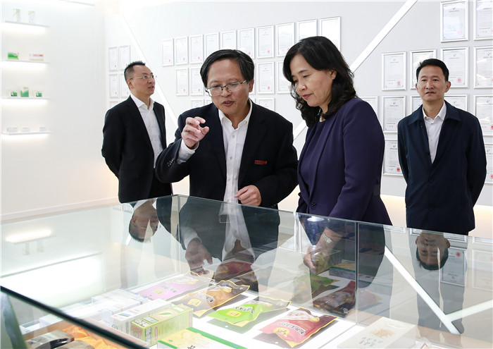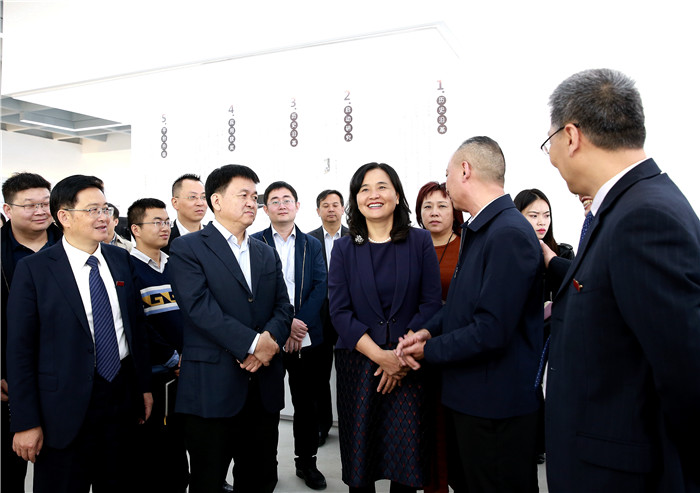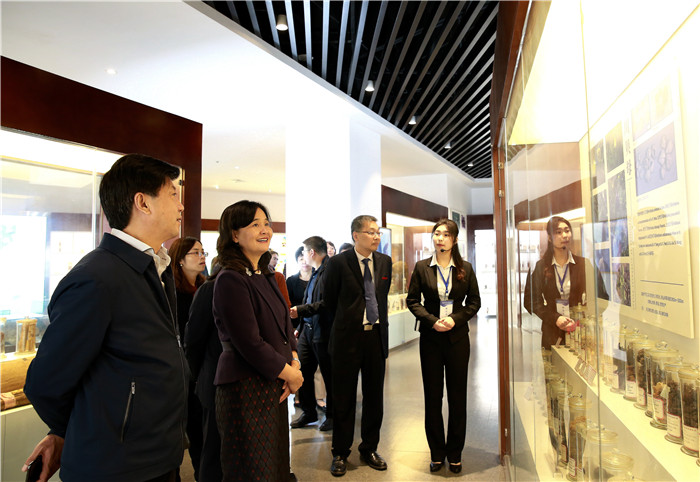 余艳红书记一行参观校园景观,调研了学校附属第二医院项目、校史馆、博物馆、中药学一流学科建设和校院企地深度融合情况。
