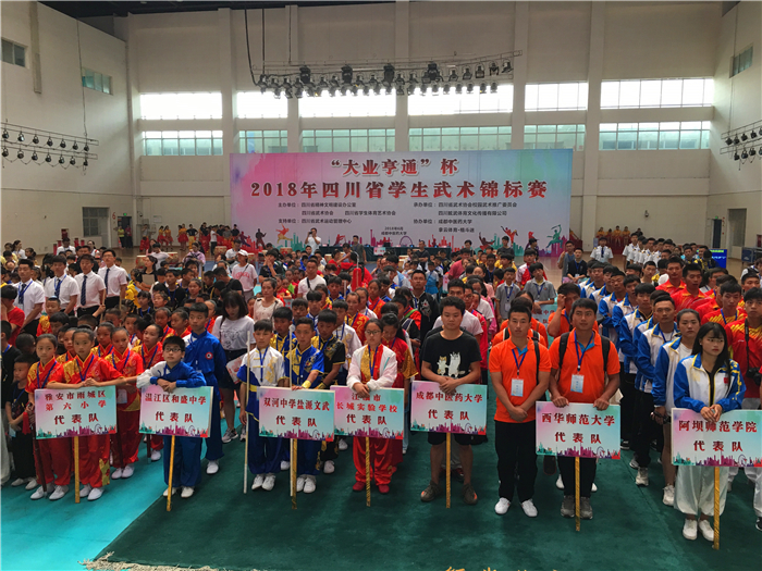 6月9至10日,由四川省精神文明建设办公室、四川省武术协会、四川省学生体育艺术协会主办,四川省校园武术推广委员会协办的四川省首届学生武术锦标赛在伟德体育馆举行,来自全省71所大中小学的826名运动员、教练员同台竞技。四川省精神文明办副主任张峰、阿坝师范学院党委书记吴昊、四川省武术运动管理中心副主任历娜、成都市武术跆拳道运动管理中心副主任刘志钢、成都市温江区体育局局长李明和伟德党委副书记、四川省校园武术推广委员会名誉主任沈涛出席。开幕式由国学院院长、四川省校园武术推广委员会常务副主任邬建卫主持;体育学院副院长谢卫致欢迎辞;历娜作校园武术推广与比赛动员,张峰宣布比赛开幕。