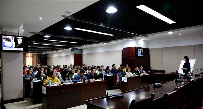首先,陈明老师以《解热镇痛抗炎药》为例作现场教学示范,通过经典的案例导入、生动的PPT展示、现场板书等多种手段,将枯燥的药理学理论知识生动地呈现给在座师生。在她的带领下,现场学习气氛轻松活跃,师生间积极互动。随后,陈明以《基于“以学生为中心”理念下的药理学教学设计》为题,结合现场教学的内容,从“什么是教学设计”“教学设计的要素”“教学设计的意义”三个方面,向在场教师分享了教学设计的理念及经验,给予老师们很多启示和参考。最后,陈明与伟德教师,就教师的成长经历与困惑、教学方法的选择与运用、教学能力的提升等问题进行了深入地交流和讨论。她鼓励青年教师积极投身教学事业,养成吃苦耐劳的精神,夯实专业知识,扩展知识储备。陈老师优雅的气质、得体的教态、虚心学习的态度及对教学的热爱,感染了在场的所有老师,交流会在激烈的掌声中结束。
