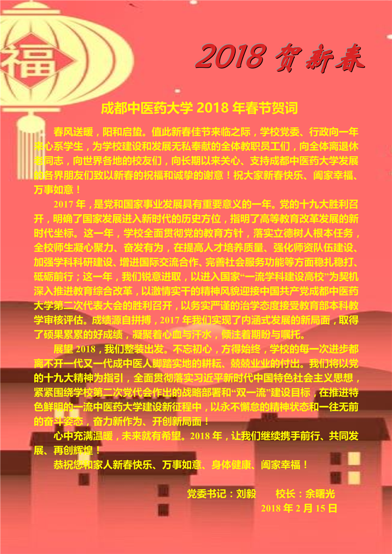 伟德源自英国19462018年春节贺词 发布时间:2018-02-15 16:25:00 浏览次数: 次 【字体:小 大】 【打印正文】 上一条:校领导看望慰问春节在岗职工和留校学生 下一条:余曙光带领相关学院、部门领导慰问医院老专家代表