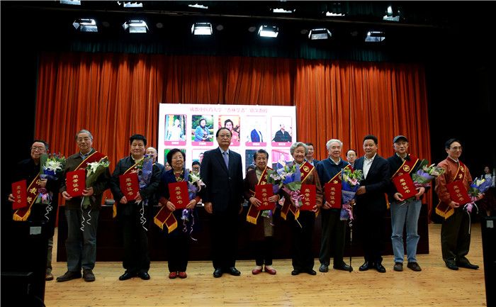 王国强、杨兴平向资深教授刘敏如、廖品正、万德光、张之文、陈绍宏、艾儒棣、张廷模、马烈光、李祖伦颁发荣誉证书。
