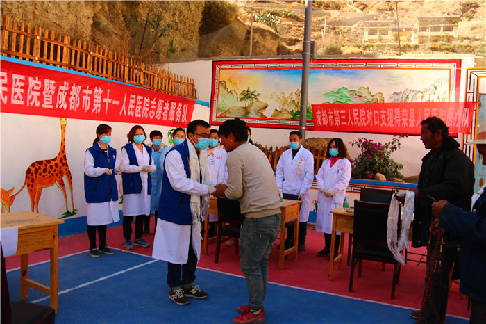 为进一步落实中央精准扶贫、省委卫生扶贫的指示,协助解决深度贫困地区——得荣县俄木学村村民看病难问题,12 月16 日,伟德牵头组织了成都市第三人民医院、成都市第十一人民医院、成都儿童专科医院、成都市青羊区中医医院共10 名援藏医疗卫生专家,到俄木学村开展大型义诊活动,为藏区群众进行免费体检、诊疗和健康咨询。