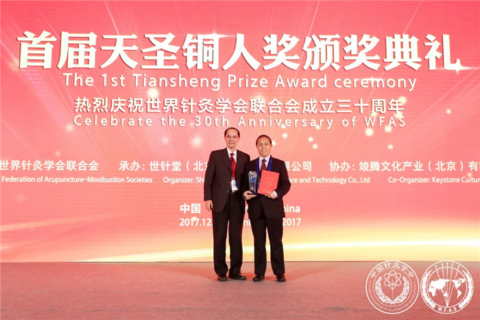 今年时值世界针灸学会联合会成立30周年,世界针联特意设立“世界针灸杰出贡献奖——天圣铜人奖”,以表彰和鼓励在世界针灸领域取得杰出成就的人、事和团队,促进针灸的世界传播和科技进步。伟德梁繁荣教授领衔的针灸经穴效应特异性研究团队获得“天圣铜人奖”之“世界针联科技特殊(团队)贡献奖”,成为首批获得该项殊荣的两个特殊贡献团队之一。
