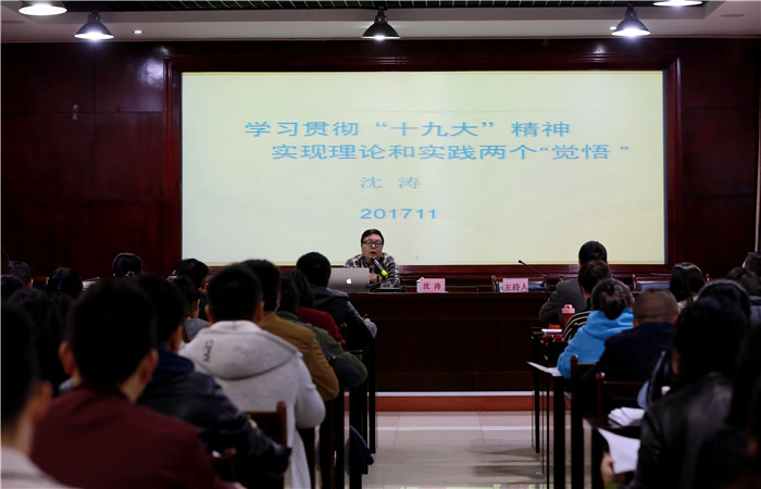 党委副书记沈涛首先作十九大精神学习辅导报告。沈涛以《学习贯彻“十九大”精神,实现理论和实践两个“觉悟”》为题,从学习的定义、如何学习十九大精神、理论觉悟、实践觉悟、如何加强和改进新形势下学校思想政治工作等五个方面深入浅出地讲解了习近平总书记的十九大报告。在谈及如何学习十九大精神时,沈涛分析了“七个讲清楚”和一条主线,即学习十九大精神要紧紧围绕习近平新时代中国特色社会主义思想,要按照习近平总书记的要求,学懂、弄通、做实,既要讲内容,又要讲方法。在谈理论觉悟和实践觉悟时,他强调理论觉悟需打通历史和理论两个脉络,即人类社会发展历史、党的历史,以及新时代中国特色社会主义思想脉络;而实践觉悟则需要知行合一、狠抓落实。他还特别指出了作为中医药大学的学生工作队伍需要关注的十九大报告重点,即教育、青年、健康中国。他从伟德一流学科建设,青年奋斗的责任、方法、途径,以及中西医并重、传承发展中医药事业三个角度对关注重点做了切合伟德学工队伍实际的精彩讲解。