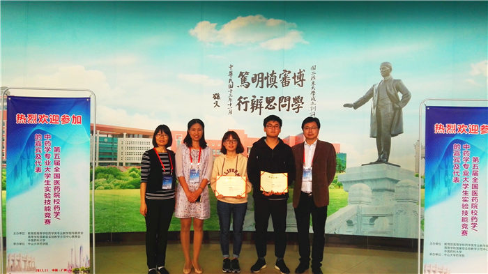 11月8日至10日第五届全国医药院校药学/中药学大学生实验技能竞赛在广州中山大学隆重举行。本次大赛由教育部高等学校药学类专业教学指导委员会、高等学校国家级实验教学示范中心联席会主办、中山大学承办。共有来自全国94所高校近500名师生参会,188名学生参赛。伟德药学院2015级中药学基地班学生陈诗韵、2015级中药资源与开发班学生李鑫在药学院副院长邓赟、张梅教授和陈胡兰教授的带领下参加竞赛。经过笔试和实验操作两部分激烈角逐,两名同学分别获得竞赛特等奖和一等奖,取得了所有参赛中医院校中的最好成绩。