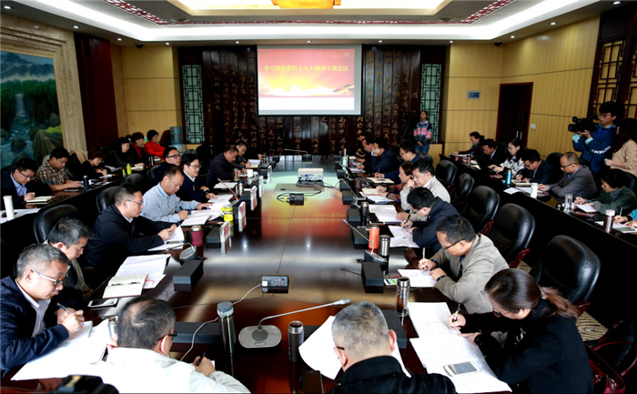 10月18日下午,参加学校集中收看十九大开幕式后,学校两委委员,分党委书记,各党务部门负责人以及发规、教务、科技、学生、研究生等相关部门负责人再次集中学习十九大报告内容,围绕贯彻落实十九大精神讨论工作、交流学习体会。