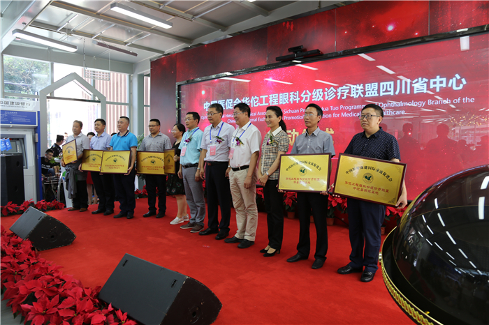 成都市第一人民医院、绵阳市中心医院、川北医学院附属医院、西南医科大学附属医院等6个地市级单位接受了“华佗工程眼科分级诊疗联盟地市级培训中心”的授牌。