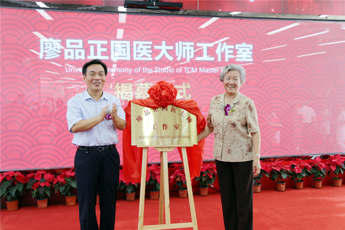 “廖品正国医大师工作室”在开业典礼上正式揭牌。廖品正教授是继首届国医大师、中医眼科学家唐由之教授后,全国第二位、四川省首位眼科界国医大师。由闫树江副局长和廖品正教授共同为工作室揭牌。