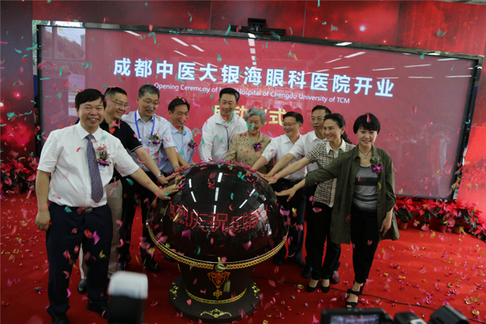 在欢庆的气氛中,成都中医大银海眼科医院开业仪式正式启动。闫树江、韩德民、廖品正、杨正春、廖成珍、赵平、唐华、刘毅书记、余曙光、段俊国等十人共同启动“成都中医大银海眼科医院水晶球”,标志着银海眼科医院扬帆启程,将以一流技术、设备、疗效、环境、服务面向广大眼病患者,全面提升民众眼健康水平,为健康中国做出积极的贡献!