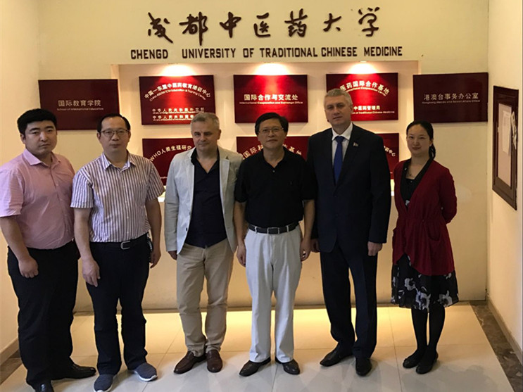 为落实今年2月我省中医药代表团出访白俄罗斯戈梅利州签署的相关协议,推动双方在共建中医药中心、学术交流、教育培训等方面的合作,日前,白俄罗斯戈梅利州卫生代表团一行2人来川商谈具体合作事宜,并于6月14日访问伟德,探讨在传统医药领域建立教育基地的可行性。副校长彭成教授,国合处、附属医院相关领导出席会谈。