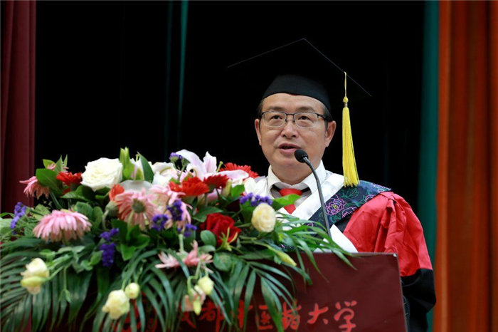 学校学位评定委员会主席、校长余曙光讲话。他向诲人不倦、辛勤耕耘的研究生导师们表示敬意,向获得博士学位的研究生致以热烈的祝贺。余曙光指出,2017届博士毕业生是伟德源自英国1946命运共同体的重要组成部分,也是学校各项事业快速发展的见证人,学校事业取得长足进步,优异成绩来之不易,也凝聚着各位导师、老师和同学的心血和汗水。“六十载励精图治,一甲子春华秋实”。去年,学校隆重举行60周年校庆,把中医药文化的博大精深,把成中医服务四川、服务健康中国的信念和行为,全面展示给社会和民众。今年,是学校推进“双一流”建设的开局之年,也是学校“十三五”事业发展的关键之年,学校一定会抓住国家大力实施 “健康中国”的历史机遇,抓住国家“一带一路”发展机遇,抓住省委省府深入推进 “治蜀兴川”的战略机遇,不断深化改革,强化内涵,砥砺前行。余曙光以 “成就生命之美”深情寄语即将步入社会的研究生:勉励同学们要修身立德、涵养身心,成就人格之美;要博极医源、精勤不倦,成就学业之美;要不断创新、锐意进取,成就创造之美。希望同学们能够拥有直面挑战的勇气、敢于担当的作风,用笑脸迎接悲惨的厄运,用百倍的勇气去应付一切不幸。不忘初心,方得始终,在人生的路上学会坚忍不拔,持之以恒,不坠青云之志并享受成功前的孤独和幸福。余曙光也希望每一位同学一如既往地关心母校,支持母校,在遇到困难的时候,不要忘记母校温暖的怀抱;在取得成功的时候,不要忘记与母校分享!