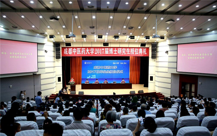 6月22 日下午,2017届博士学位授位仪式在温江校区百会堂举行,校领导刘毅、余曙光、彭成、延建明和相关学院负责人出席,博士研究生导师与2017届博士毕业生参加授位典礼。授位典礼由研究生院院长孟宪丽主持。